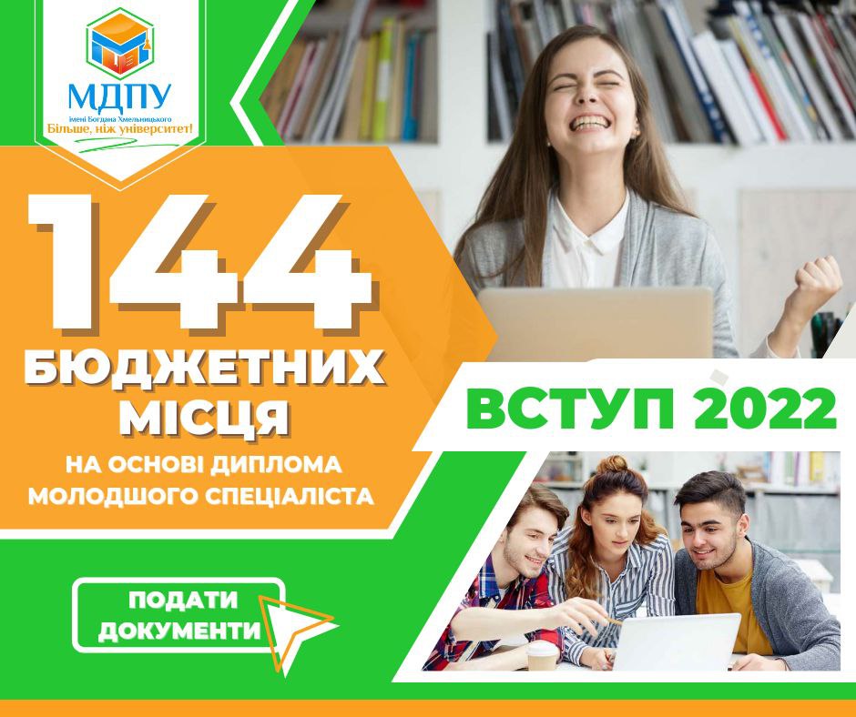 144 БЮДЖЕТНИХ МІСЦЯ ДЛЯ ВСТУПНИКІВ НА БАЗІ ДИПЛОМУ МОЛОДШОГО СПЕЦІАЛІСТА.