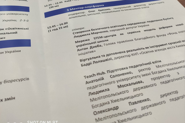 На ментор-платформі Національного освітнього форуму виступали ректор Мелітопольського державного педагогічного університету імені Богдана Хмельницького Анатолій Солоненко, проректор з наукової роботи Людмила Москальова, начальник центру IT-технологій і комп’ютерного дизайну Олександр Павленко.
