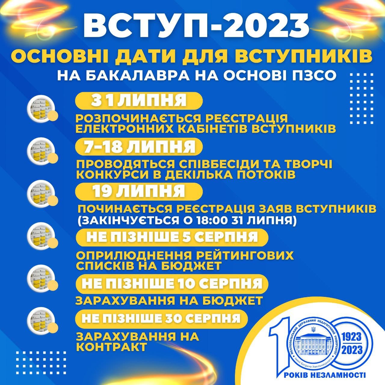 Мелітопольський державний педагогічний університет імені Богдана Хмельницького запрошує тебе увійти до складу талановитої студентської родини фахівців нової генерації! 100 років ми формуємо освітню еліту України, поєднуючи досвід з інноваціями та орієнтуючись на виклики сьогодення! 4 факультети, 1 Навчально-науковий інститут та понад 50 акредитованих освітніх програм; Бакалаврат, Магістратура, Аспірантура, Докторантура; Збільшена кількість місць державного замовлення; Дистанційний […]