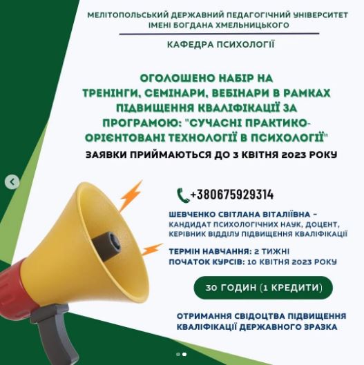 КОНКУРС “МІСТЕР ТА МІС УНІВЕРСИТЕТ” ПОВЕРТАЄТЬСЯ! Мелітопольський державний педагогічний університет імені Богдана Хмельницького запрошує найкращу студентську молодь взяти участь у щорічному КОНКУРСІ КРАСИ І ТАЛАНТУ “МІСТЕР ТА МІС УНІВЕРСИТЕТ 2023”! Новий ONLINE формат, сучасний вид голосування, яскраві учасники, цікаві конкурсні завдання та головне питання – хто отримає титул ПЕРЕМОЖЦІВ! 1 ТУР – ФОТО-БАТЛ! 2 ТУР – […]