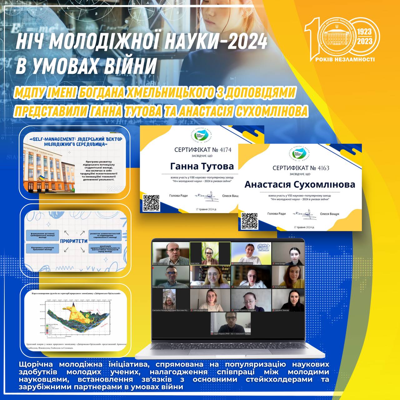 НІЧ МОЛОДІЖНОЇ НАУКИ -2024 В УМОВАХ ВІЙНИ 17 травня 2024 року Радою молодих учених при Міністерстві освіти і науки України було проведено науково-популярний захід для молодих учених України «НІЧ МОЛОДІЖНОЇ НАУКИ-2024 В УМОВАХ ВІЙНИ». Мета заходу – популяризація наукових здобутків молодих учених, налагодження співпраці між молодими науковцями, встановлення зв’язків з основними стейкхолдерами та зарубіжними партнерами […]