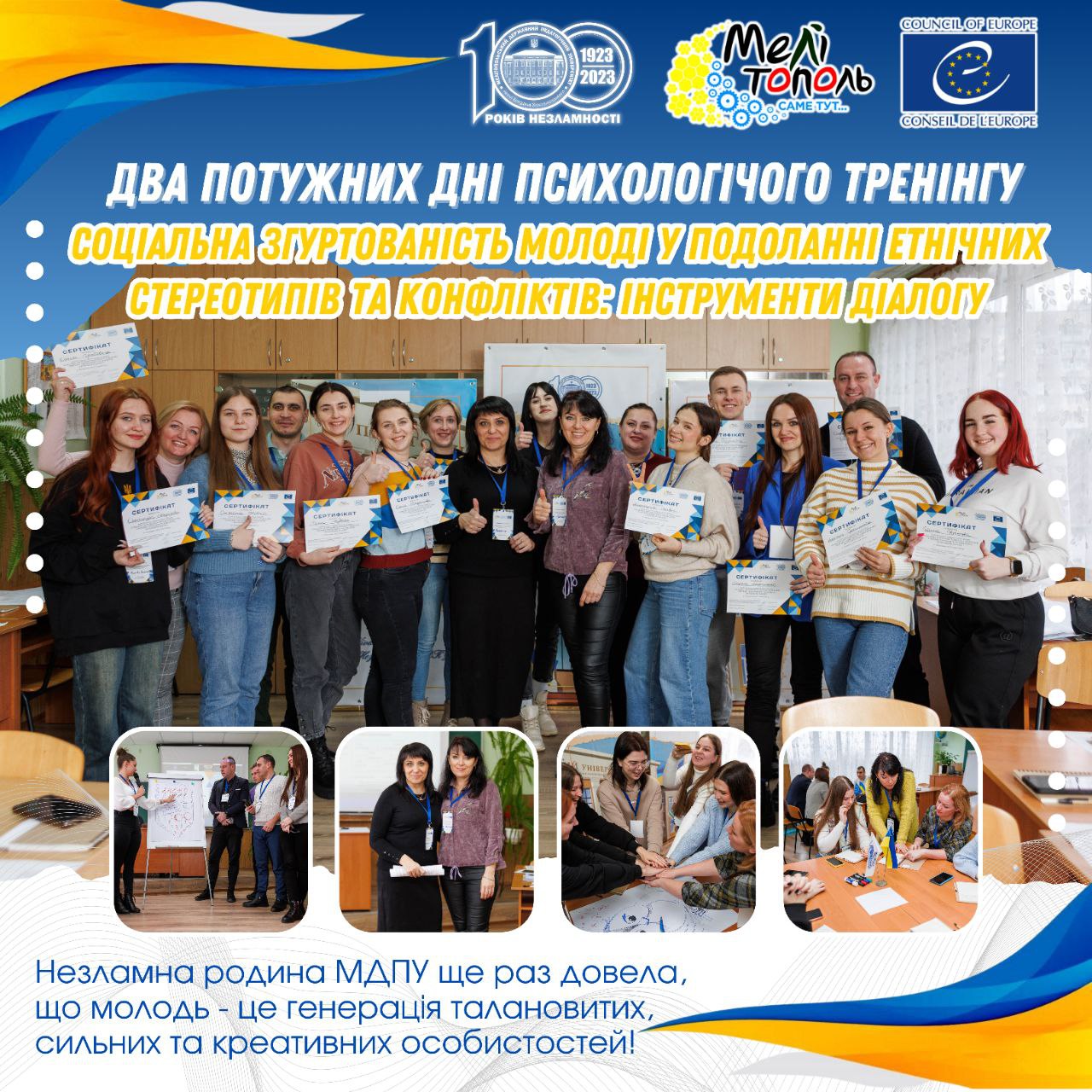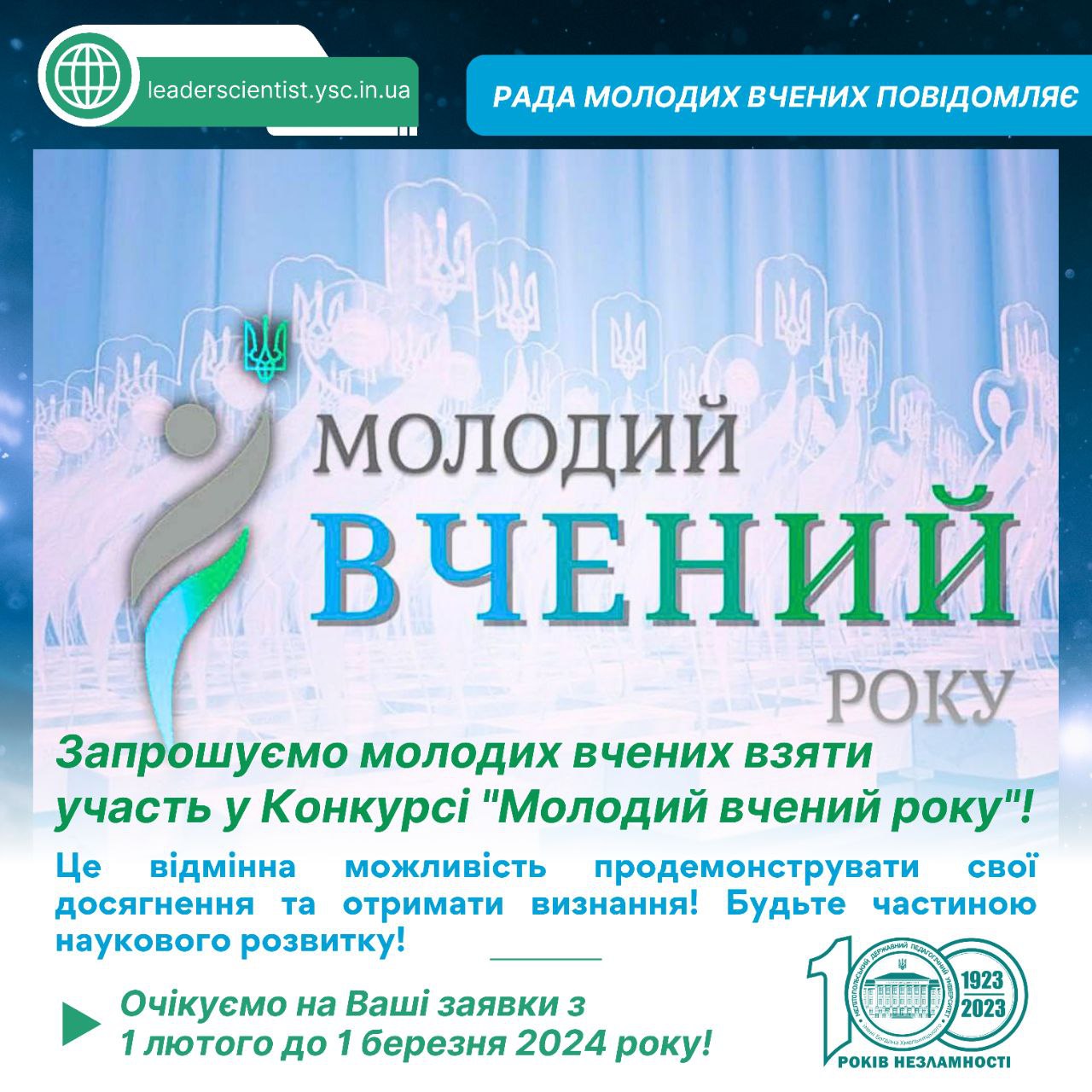 ДО УВАГИ АКАДЕМІЧНОЇ СПІЛЬНОТИ УНІВЕРСИТЕТУ Мелітопольський державний педагогічний університет імені Богдана Хмельницького запрошує взяти участь у Х регіональній науково-практичний конференції «Людина і світ»! Напрями роботи конференції: Людина і природа. Психологія молодіжних конфліктів. Проблеми дозвілля молоді. Релігія та суспільство. Людина в глобальному світі. Проблеми становлення молодої сім’ї. Молодіжні субкультури. Толерантність та міжкультурний діалог. Захід відбудеться 22 […]