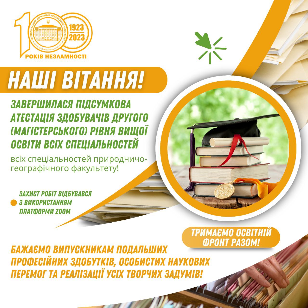 КОЛЕКТИВ УНІВЕРСИТЕТУ ВІТАЄ! 29 грудня завершилася підсумкова атестація здобувачів ІІ (магістерського) рівня вищої освіти всіх спеціальностей природничо-географічного факультету! Захист робіт відбувався з використанням платформи ZOOM. Під час доповідей здобувачі успішно представляли результати проведених досліджень у різних галузях, зазначаючи на практиці важливості своїх досліджень. Доповіді супроводжувались демонстрацією презентацій. Здобувачі вищої освіти продемонстрували високий рівень підготовки дипломних […]