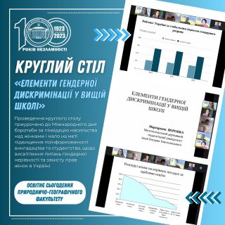 📚✅24 листопада 2023 року на природничо-географічному факультеті МДПУ імені Богдана Хмельницького був проведений круглий стіл «ЕЛЕМЕНТИ ГЕНДЕРНОЇ ДИСКРИМІНАЦІЇ У ВИЩІЙ ШКОЛІ».