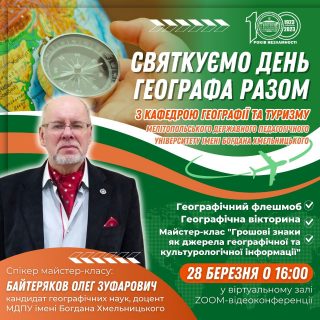 Кафедра географії та туризму Мелітопольського державного педагогічного університету імені Богдана Хмельницького в рамках святкування Дня географа України запрошує стати учасником: