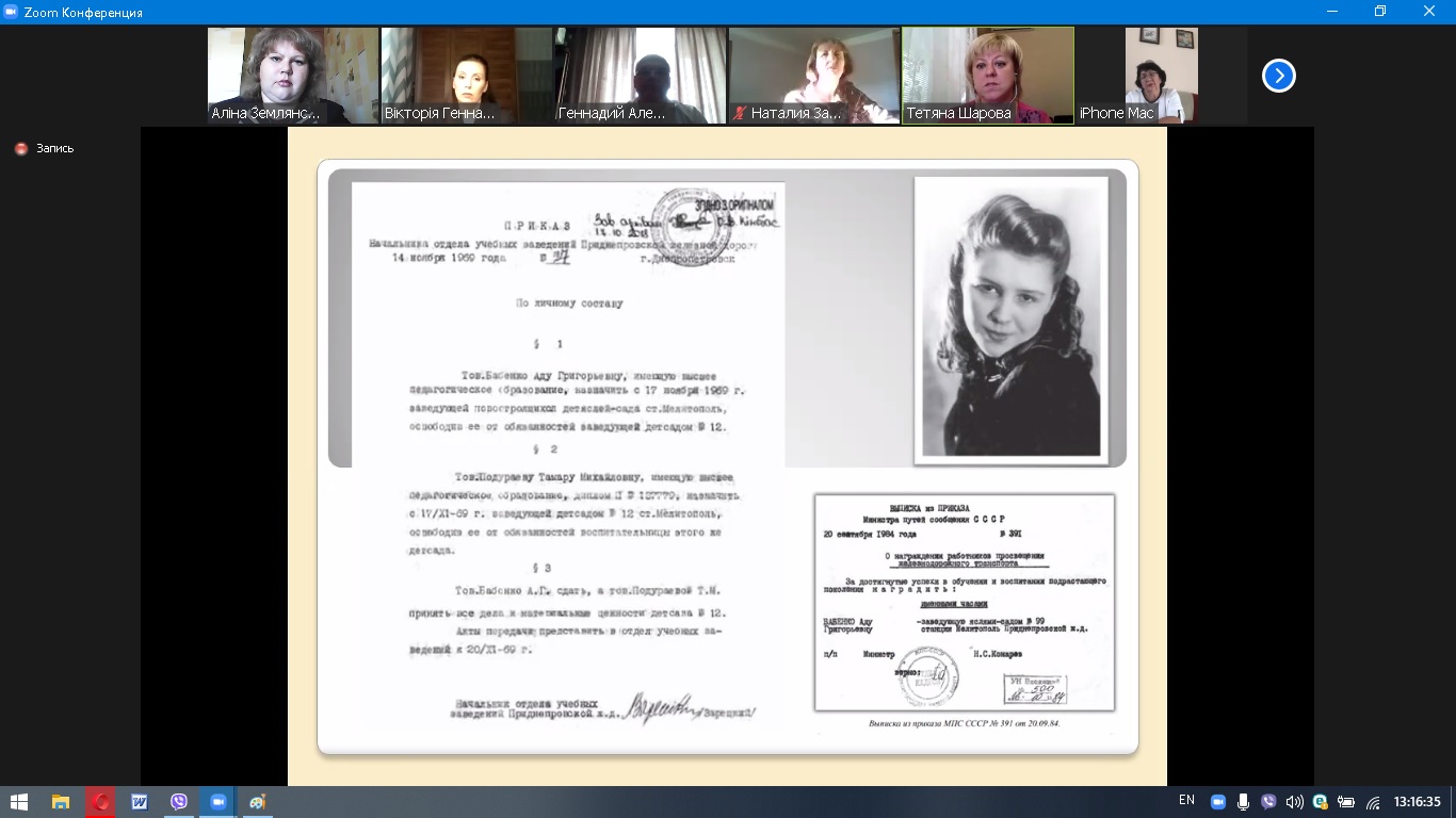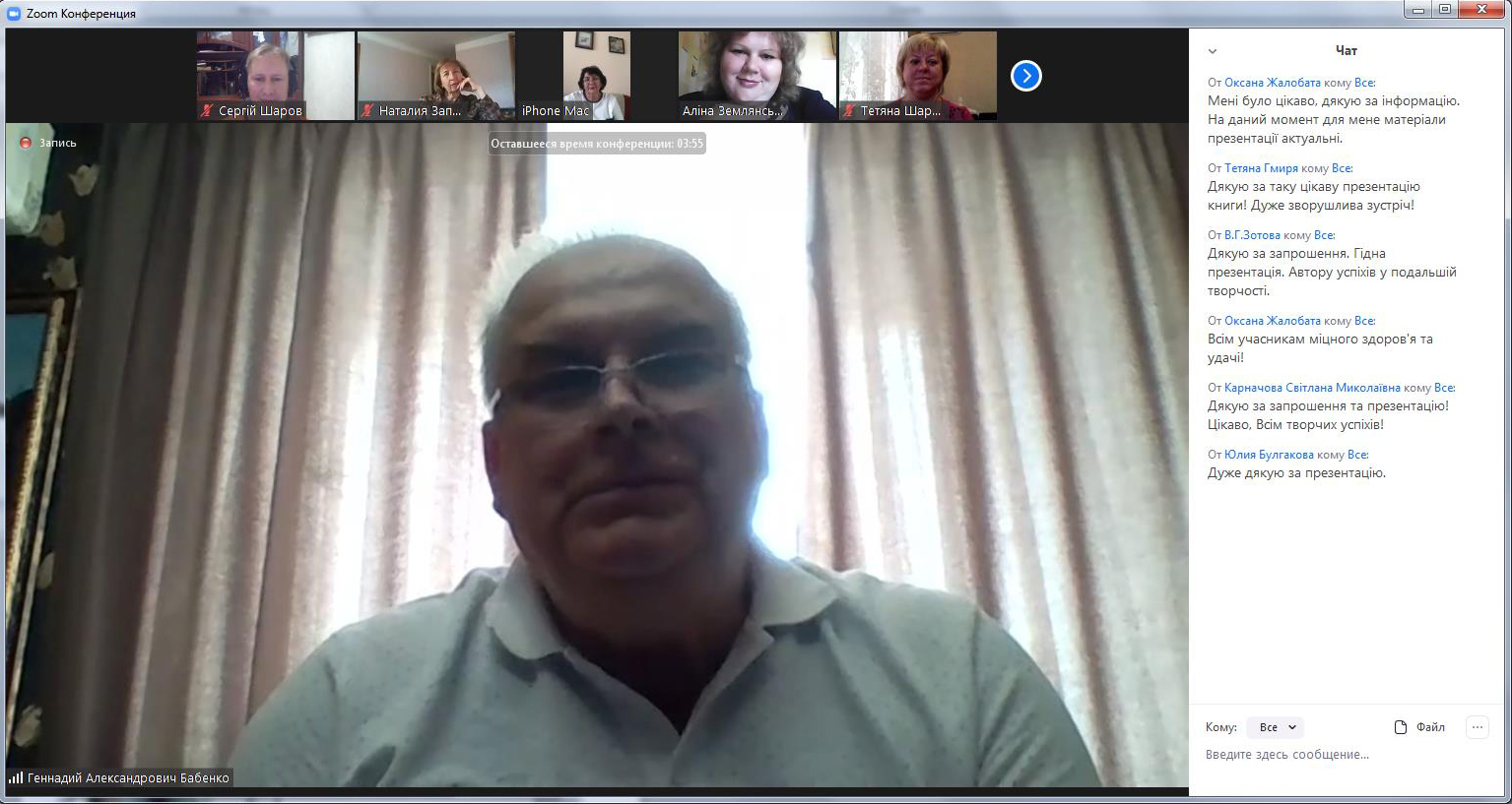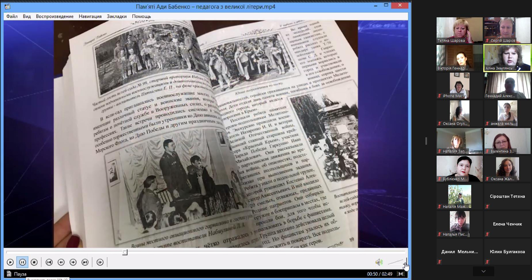 Доцент Шарова Т.М. представила презентацію життєвого шляху Ади Григорівни Бабенко, розповіла про книгу її сина, що розкриває образ матері як Жінки, Особистості, Педагога, Керівника.