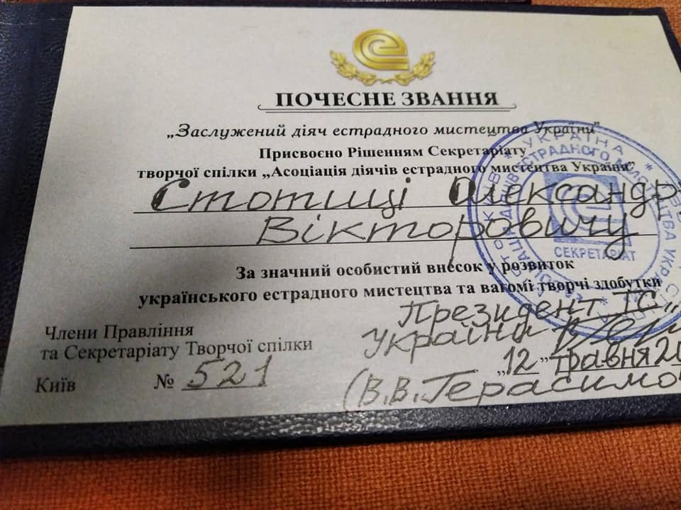Керівнику джаз-квартету «Саунд-версія» присвоєно почесне звання «Заслужений діяч естрадного мистецтва України»Днями відбулася важлива подія: за значний особистий внесок у розвиток українського естрадного мистецтва та вагомі творчі здобутки доценту кафедри інструментального виконавства і музичного мистецтва, кандидату педагогічних наук Стотиці Олександру Вікторовичу було присвоєно почесне звання «Заслужений діяч естрадного мистецтва України» (рішенням Секретаріату творчої спілки «Асоціація діячів естрадного мистецтва України»).