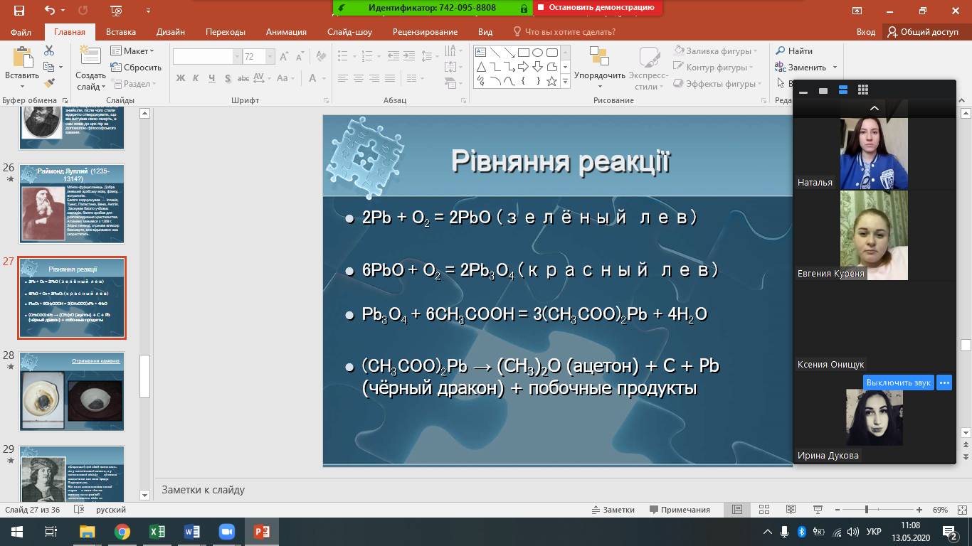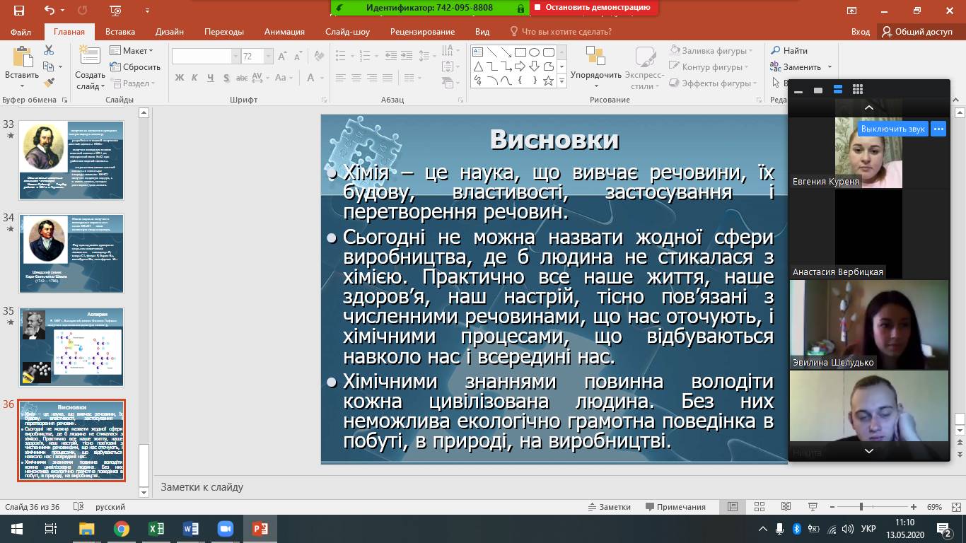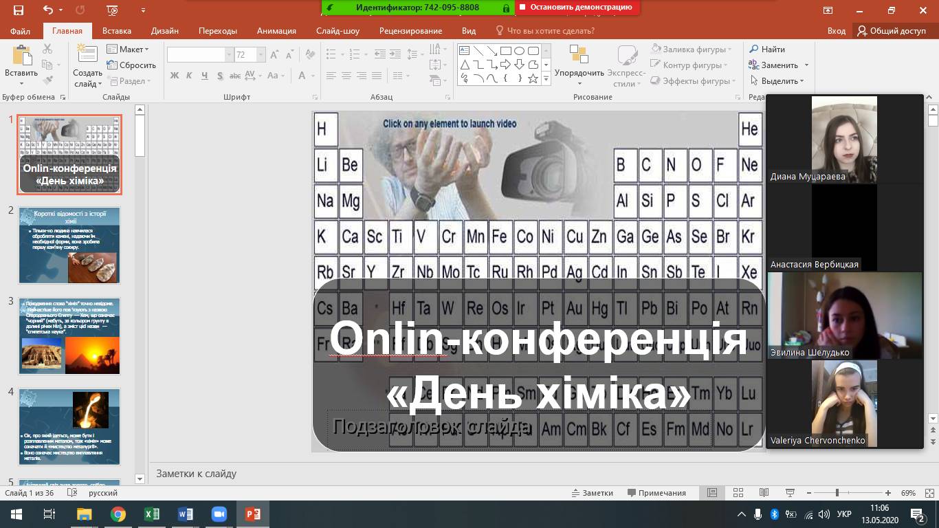 13 травня було проведено онлайн-конференцію, присвячену історії виникнення та становлення хімії як науки. Ініціаторами заходу стали завідувач кафедри органічної і біологічної хімії Дюжикова Т.М., викладачі Федорко А.С. і Гапоненко Т.М.