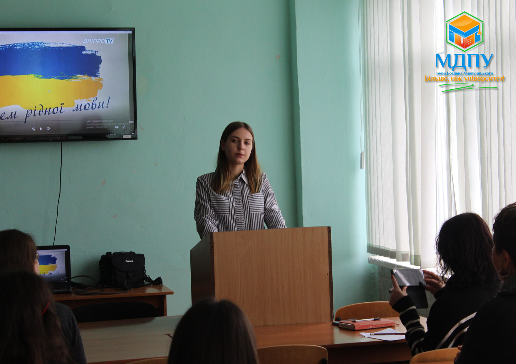 В аудиторії від самого початку вітала доброзичлива для спілкування атмосфера, студенти та викладачі з усією толерантністю обговорювали мовне питання у нашому університеті, місті та країні. Доповідачі оприлюднили цікаві факти про українську та інші мови світу, читали вірші та проводили мовні конкурси, у яких, звичайно ж, перемогла дружба! За інформаційне та естетичне задоволення дякуємо Осадчук Карині, Пилипович Вікторії, Рибак Єлизаветі, Болотіній Дар’ї та Майзенко Вікторії.