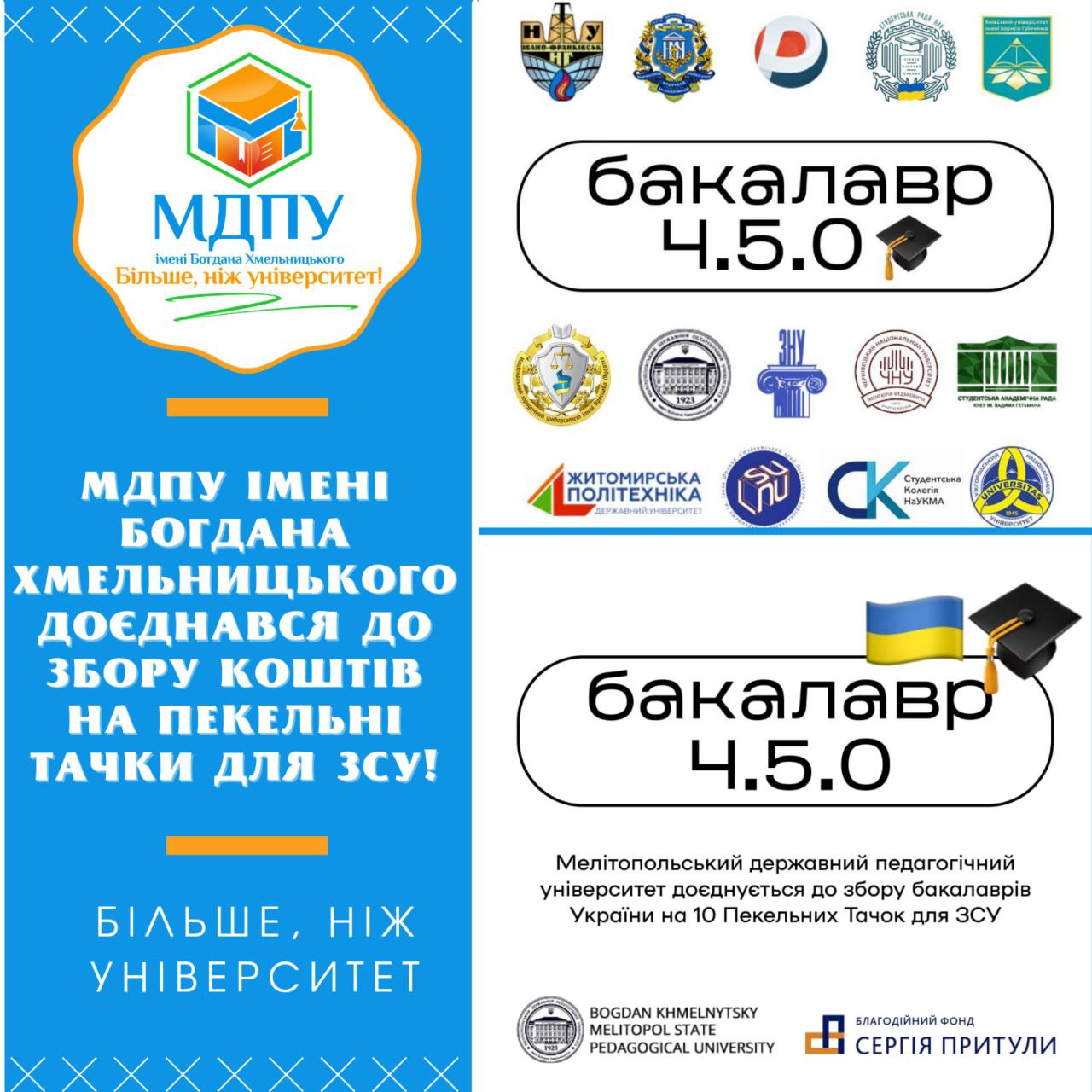 Мелітопольський державний педагогічний університет імені Богдана Хмельницького доєднався до зборів бакалаврів України на 10 Пекельних Тачок для Збройних сил України від благодійного фонду Сергія Притули.