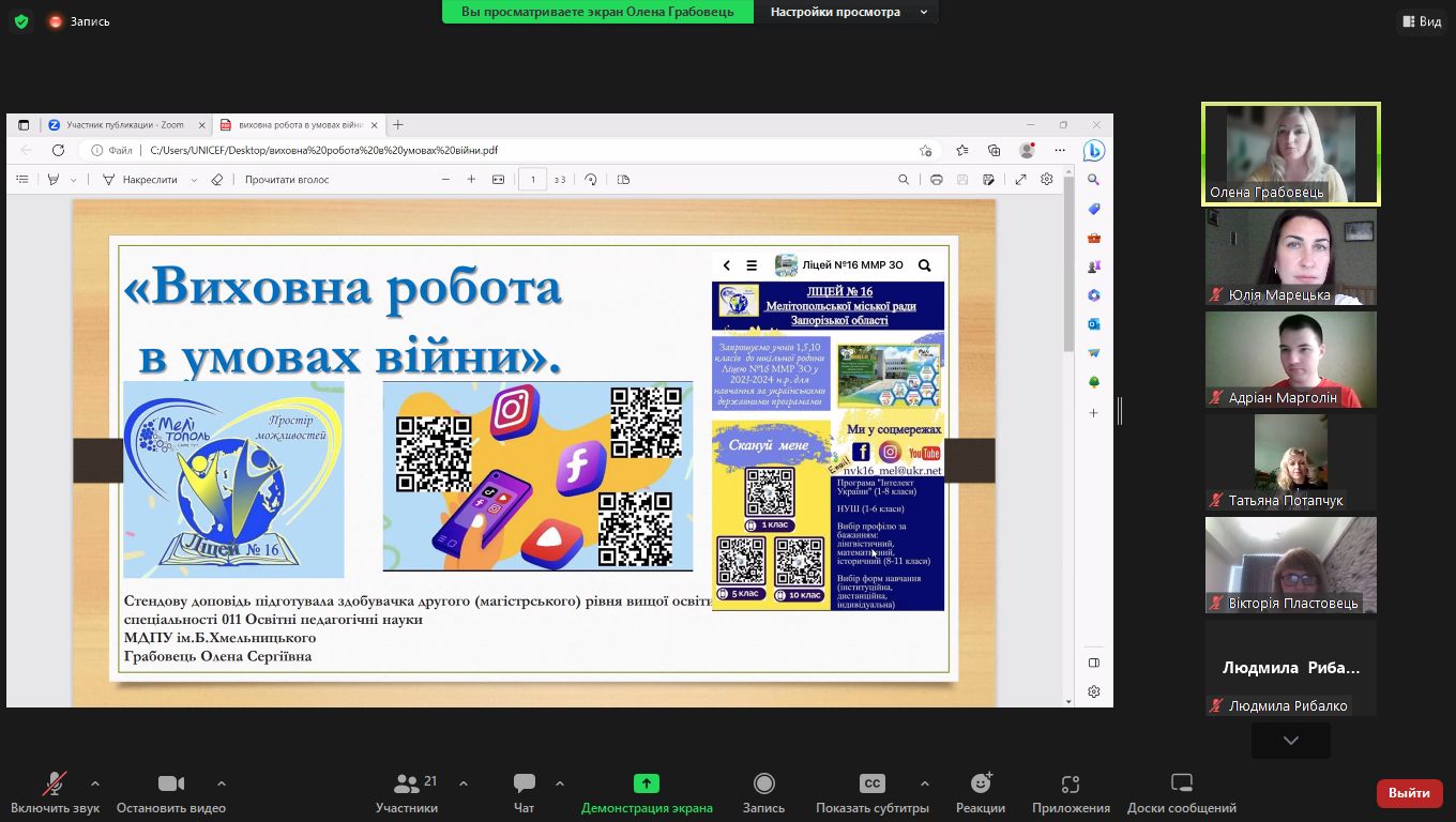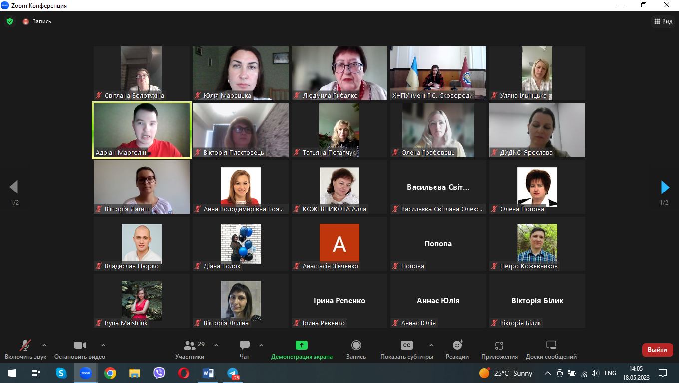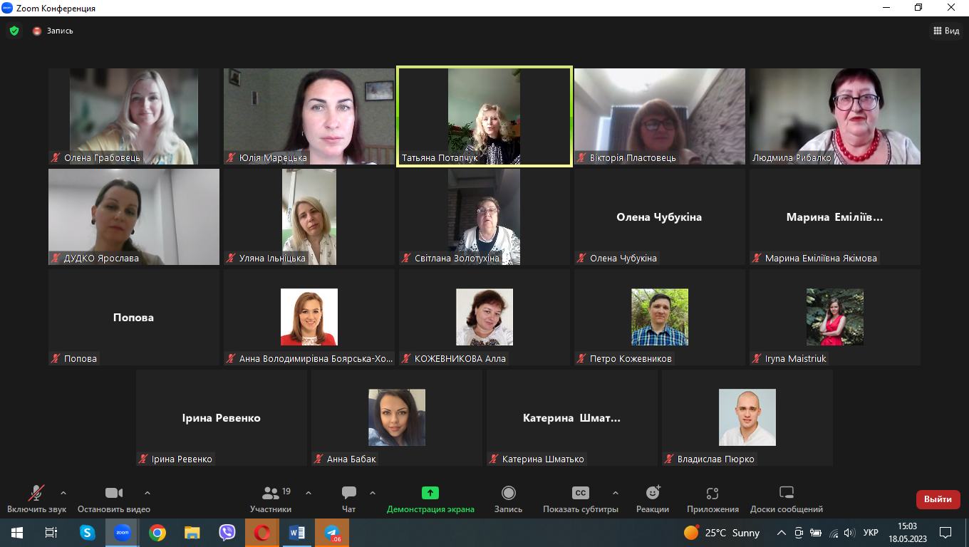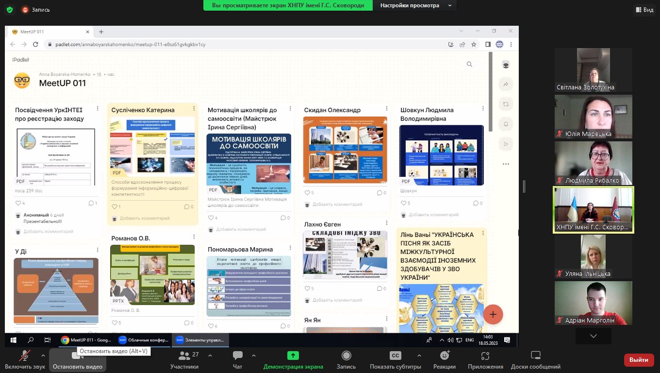18 травня 2023 року в режимі Zoom-конференції було проведено MeetUP на тему «Інновації педагогічної освіти» для здобувачів другого і третього рівнів вищої освіти спеціальності 011 Освітні, педагогічні науки.