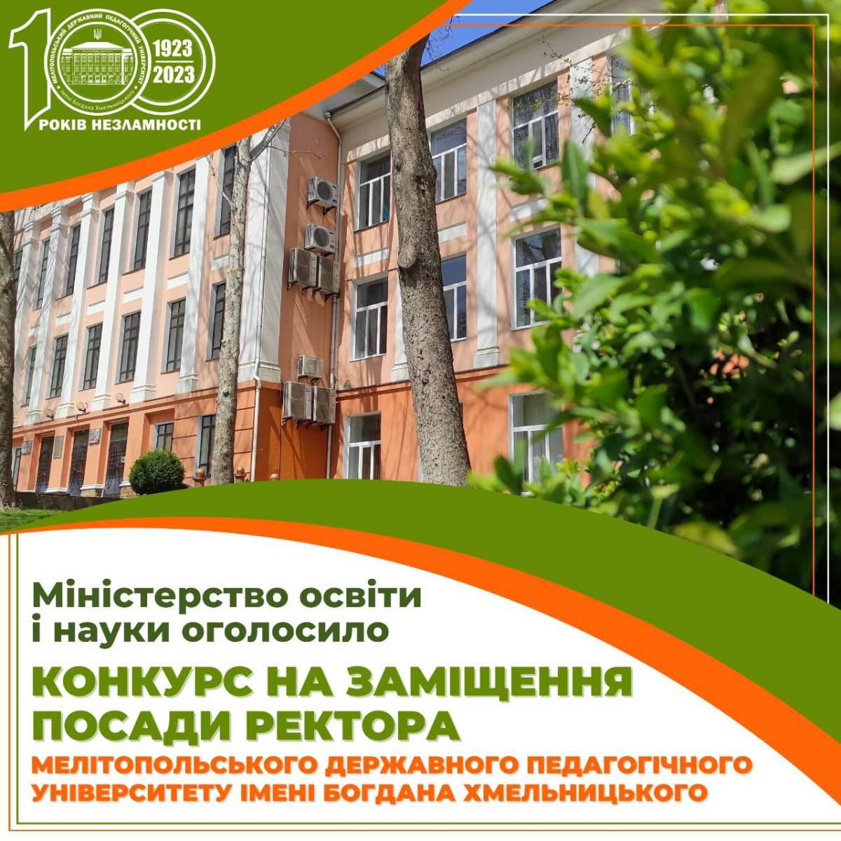 Міністерство освіти і науки оголосило конкурс на заміщення посади ректора Мелітопольського державного педагогічного університету імені Богдана Хмельницького.