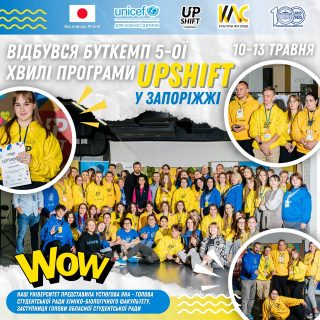 Голова Студентської Ради хіміко-біологічного факультету, заступниця голови Обласної Студентської Ради Яна Устюгова стала учасницею буткемпу 5-ої хвилі програми UPSHIFT у Запоріжжі у складі команди “Моноліт” з 10 по 13 травня.