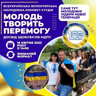 Всеукраїнська волонтерська молодіжна коннект-студія «Молодь творить Перемогу» має на меті обмін досвідом здобувачів МДПУ, які завжди слухають своє українське серце, допомагають усім, хто цього потребує і щоденно роблять усе можливе для якнайшвидшої перемоги України.