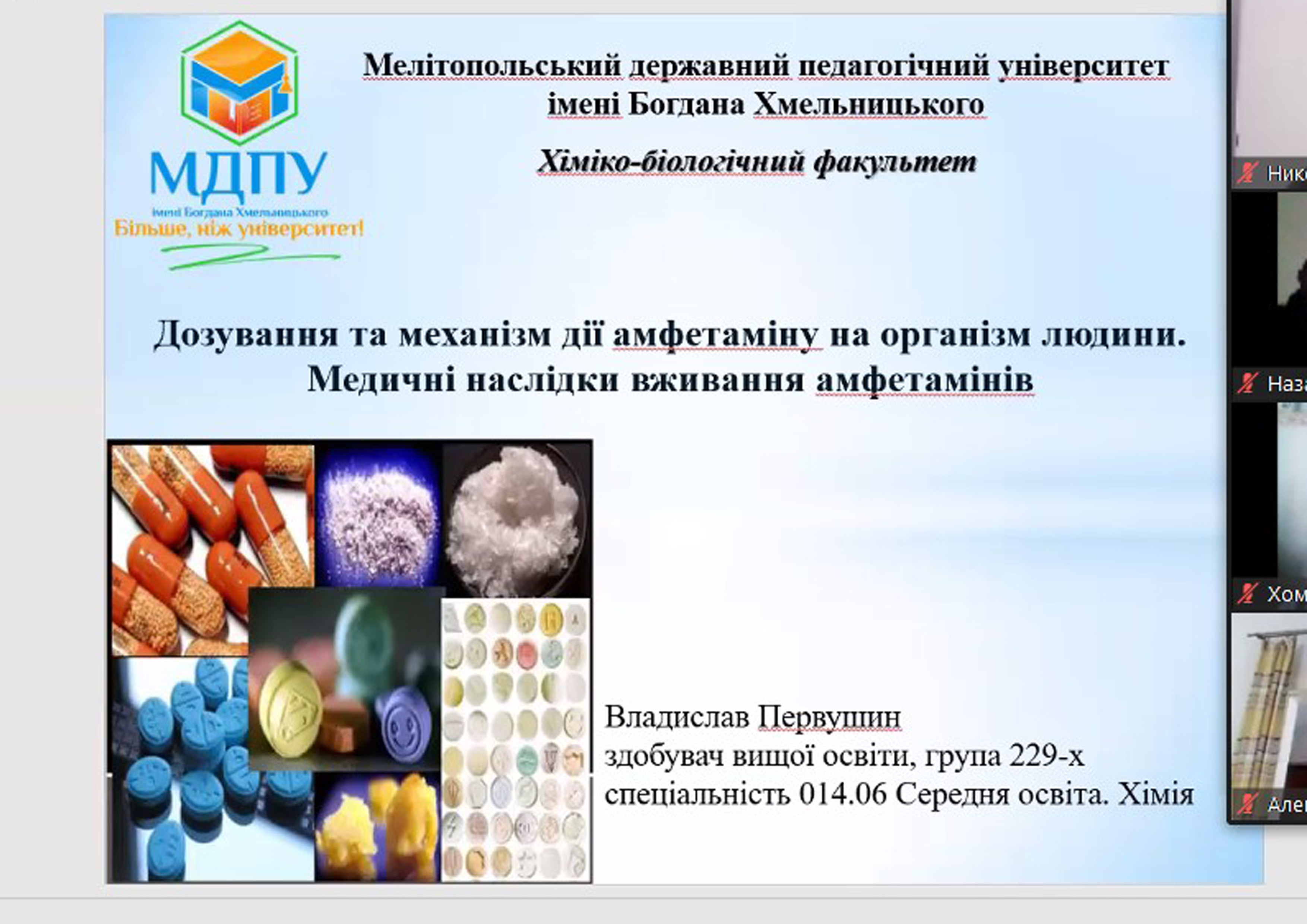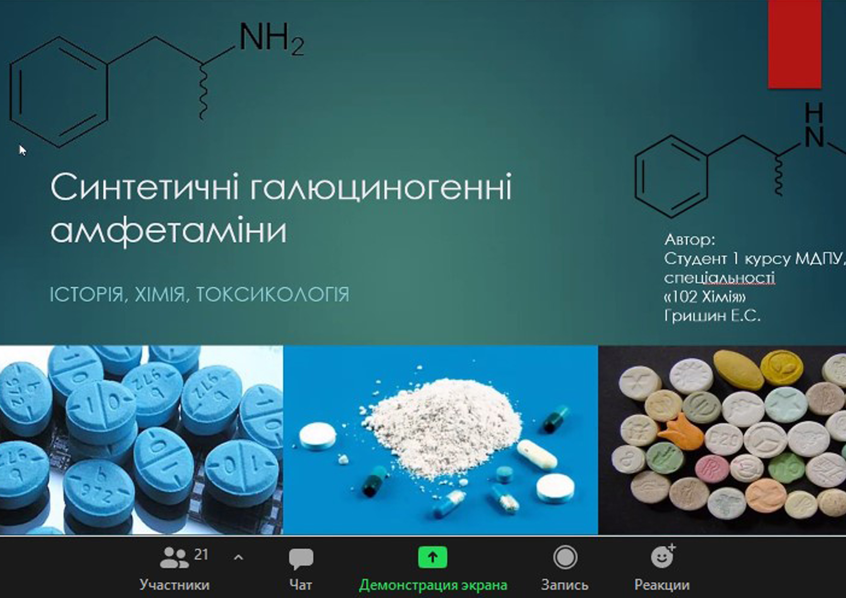В рамках співпраці згідно договору № 56/38-06 від 12.10.2020 року між Мелітопольським державним педагогічним університетом імені Богдана Хмельницького та Запорізьким науково-дослідним експертно-криміналістичним центром МВС України 18.02.2021 року було проведено спільний науковий онлайн-семінар «Синтетичні галюциногенні амфетаміни: історія, хімія, токсикологія».