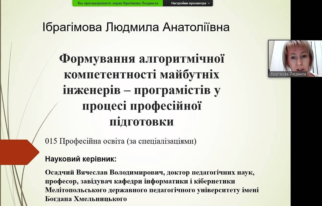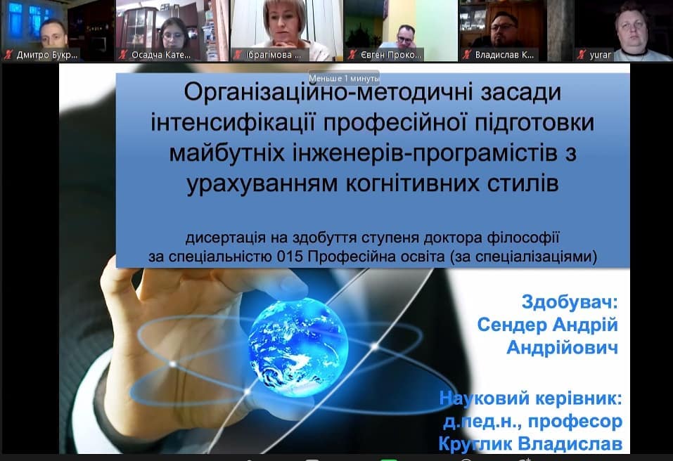 19 лютого 2021 року на кафедрі інформатики і кібернетики в режимі Zoom-конференції відбулося засідання фахового семінару з обговорення дисертаційних досліджень на здобуття ступеня доктора філософії за спеціальністю 015 Професійна освіта (за спеціалізаціями):