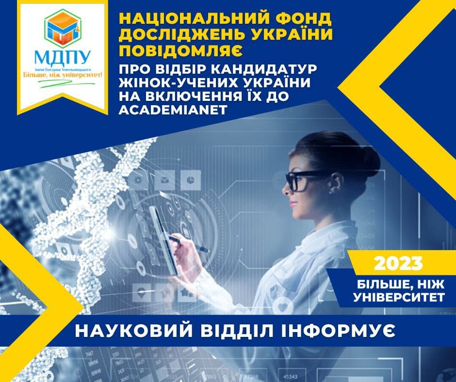 Національний фонд досліджень України повідомляє про відбір кандидатур жінок-учених України на включення їх до AcademiaNet – міжнародної бази даних, що містить понад 3150 профілей жінок-науковиць в усіх галузях наук з понад 40 країн світу!