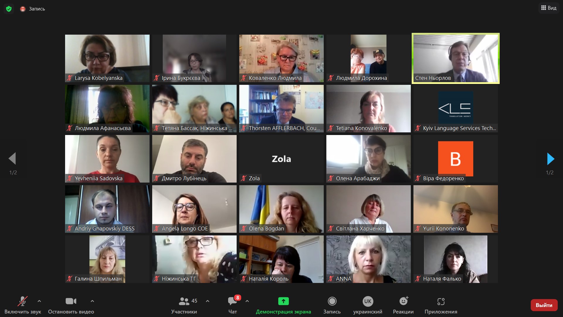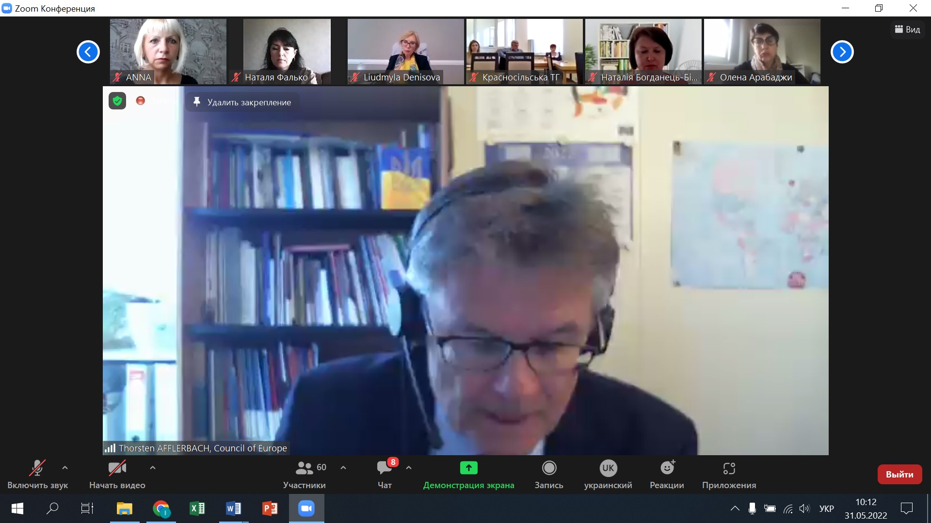 Дякуємо модераторам Стену Ньорлову, Голові Офісу Ради Європи в Україні та Земфірі Кондур, менеджерці Проєкту Ради Європи за організацію цієї важливої зустрічі.