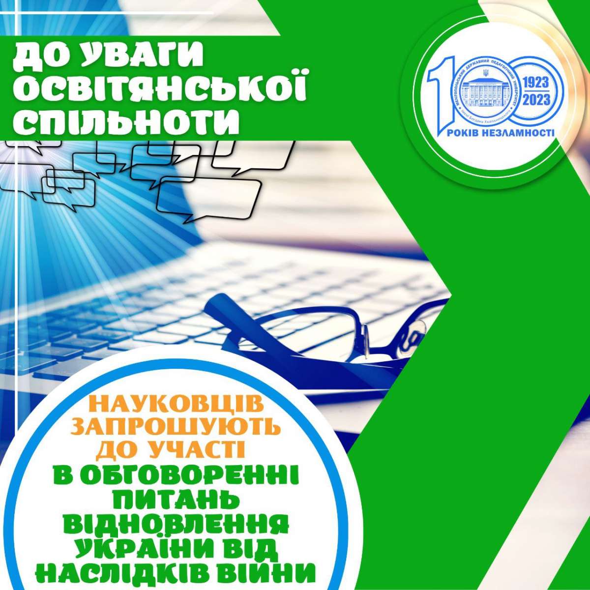 Науковців запрошують до участі в обговоренні питань відновлення України від наслідків війни!