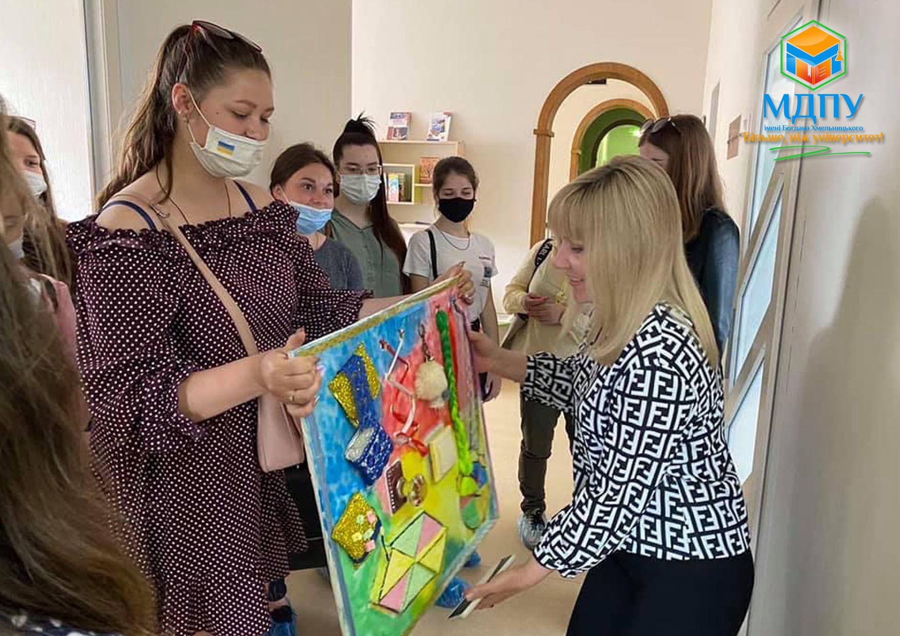 Під час практики здобувачі відвідали КУ «Інклюзивно-ресурсний центр» Мелітопольської міської ради Запорізької області (директор – Колодіна Т.В.). Під час зустрічі здобувачі мали можливість ознайомитися з напрямками роботи фахівців та основними завданнями ІРЦ, отримали відповіді на хвилюючі їх питання. Наприкінці зустрічі здобувачі презентували дидактичні посібники, як виготовили своїми руками для роботи з дітьми.