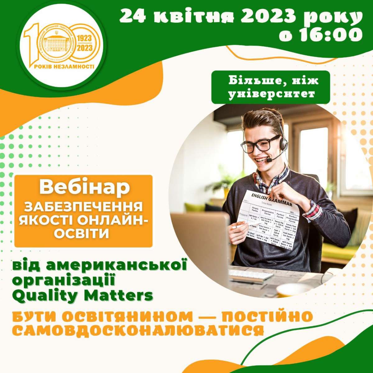 Фахівці із QM спільно з Національним агентством проведуть вебінар «Забезпечення якості онлайн-освіти», який відбудеться 24 квітня о 16:00.