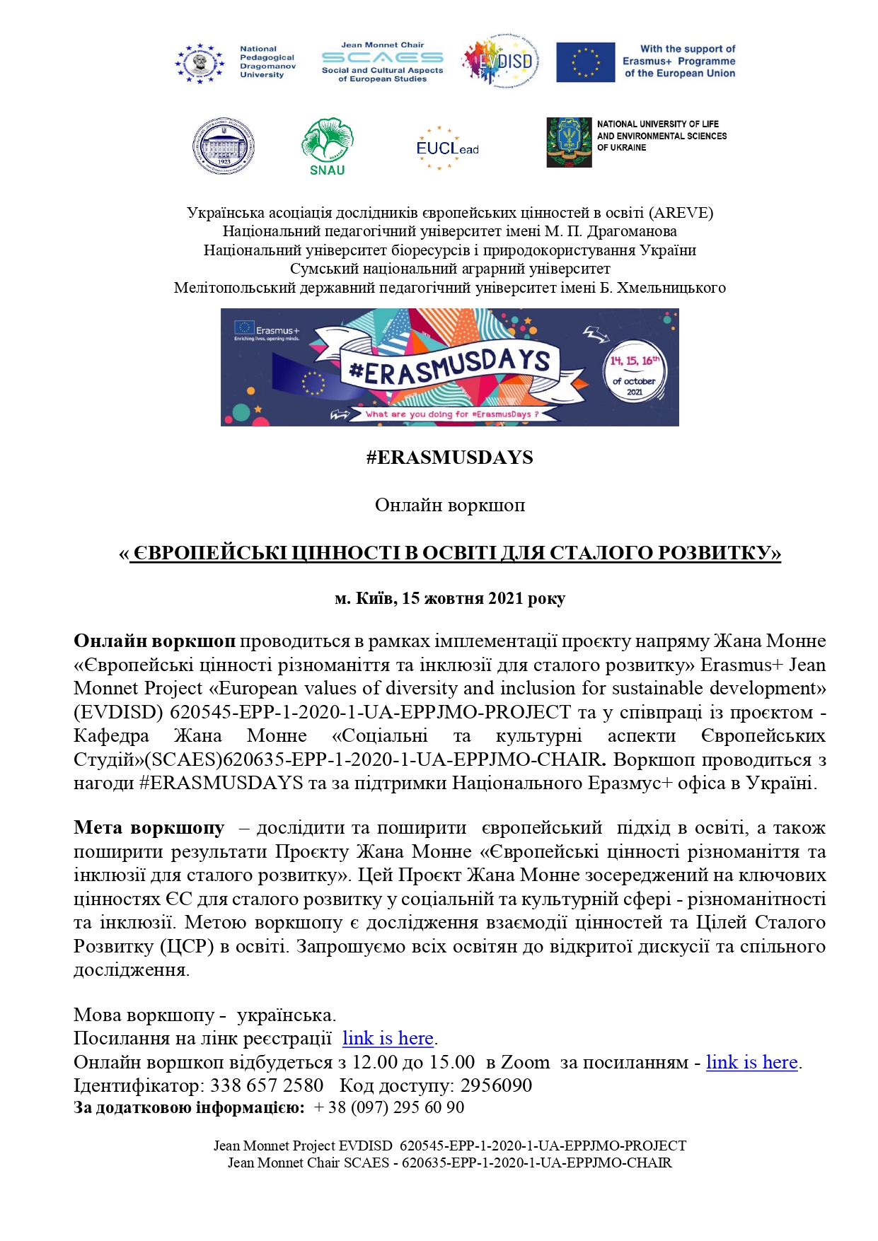 МДПУ > Новини університету > Онлайн воркшоп «ЄВРОПЕЙСЬКІ ЦІННОСТІ В ОСВІТІ ДЛЯ СТАЛОГО РОЗВИТКУ»