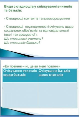 В процесі комунікативної взаємодії вчителі та батьки мали змогу усвідомити необхідність впровадження нових методів і підходів (в тому числі здоров’язбережувальних) до побудови нового і безпечного освітнього середовища з метою забезпечення здоров’я дітей та максимального результату в навчанні і вихованні учнів.