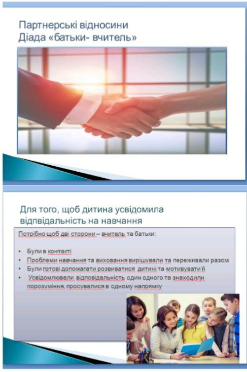 В процесі комунікативної взаємодії вчителі та батьки мали змогу усвідомити необхідність впровадження нових методів і підходів (в тому числі здоров’язбережувальних) до побудови нового і безпечного освітнього середовища з метою забезпечення здоров’я дітей та максимального результату в навчанні і вихованні учнів.