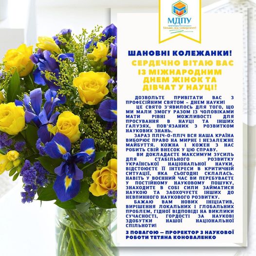 Це свято з’явилось для того, що ми мали змогу разом із чоловіками мати рівні можливості для просування в науці та інших галузях, пов’язаних з розвитком наукових знань.Зараз пліч-о-пліч вся наша країна виборює право на мирне і незалежне майбуття. Кожна і кожен з нас робить свій внесок у цю справу.