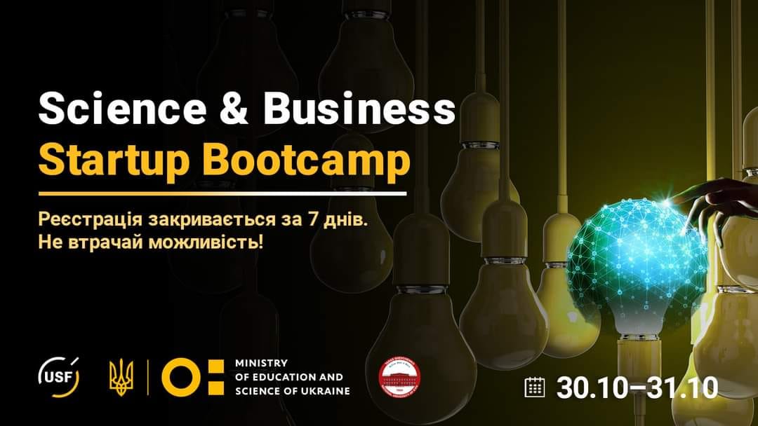 30-31 жовтня 2021 року відбудеться офлайн-тренінг для науковців, стартаперів і підприємців на ранніх стадіях розвитку в галузі наукоємних інновацій і технологій Sсience&Business StartupBootcamp free of charge.