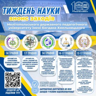 До уваги академічної спільноти університету, здобувачів вищої освіти та партнерів Університету! Запрошуємо долучитися до відзначення ТИЖНЯ НАУКИ в МДПУ імені Богдана Хмельницького!