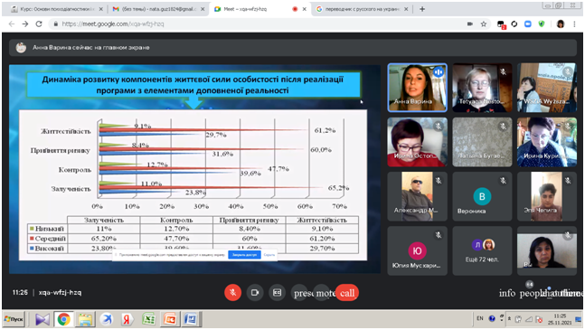В рамках пленарного засідання ст. викл. кафедри психології Мелітопольського державного педагогічного університету імені Богдана Хмельницького Варіна Ганна та завідувач кафедри інформатики та кібернетики, доктор педагогічних наук, професор Вʼячеслав Осадчий продемонстрували ефективність міждисциплінарної співпраці на прикладі реалізації емпіричного дослідження з вивчення особливостей комплексної імплементації використання імерсивних технологій в процес розвитку життєстійкості особистості в сучасних глобалізованих умовах реформації освітнього простору. Викладачі кафедри психології наголосили на ефективності та пріоритетності міждисциплінарної співпраці Лабораторії психології здоровʼя, Лабораторії психофізіологічних досліджень та STEAM-лабораторії у пропріумі вирішення проблем збереження особистісного ресурсу, життєстійкості та психологічного благополуччя майбутніх фахівців в умовах карантинних обмежень, спричинених пандемією Covid-19.