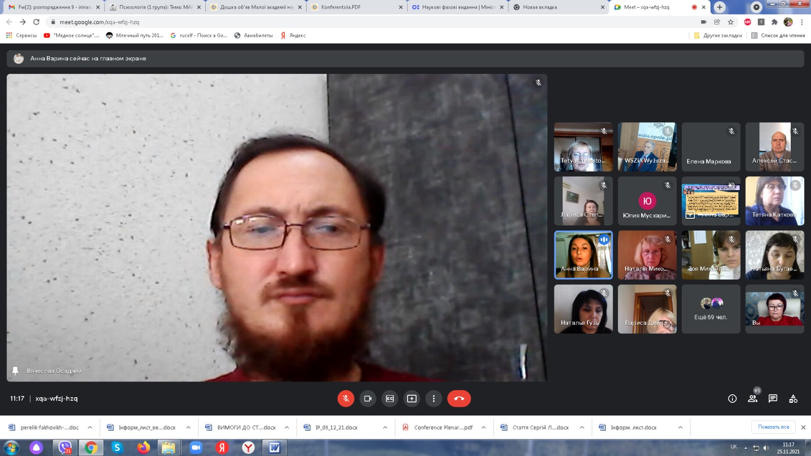 Викладачі та здобувачі вищої освіти кафедри психології, кафедри інформатики та кібернетики, та кафедри дошкільної освіти і соціальної роботи 25 листопада 2021 року на платформі Google Meet прийняли активну участь у пленарному засіданні VІ-ої Міжнародної науково-практичної інтернет-конференції «Сучасні проблеми забезпечення якості життя в глобалізованому світі». Модератор конференції виступила проф. Технічного університету в Катовіце, к.е.н., доц. Бердянського державного педагогічного університету Тетяна Несторенко. Мелітопольський державний педагогічний університет імені Богдана Хмельницького виступив співорганізатором такої масштабної наукової події.