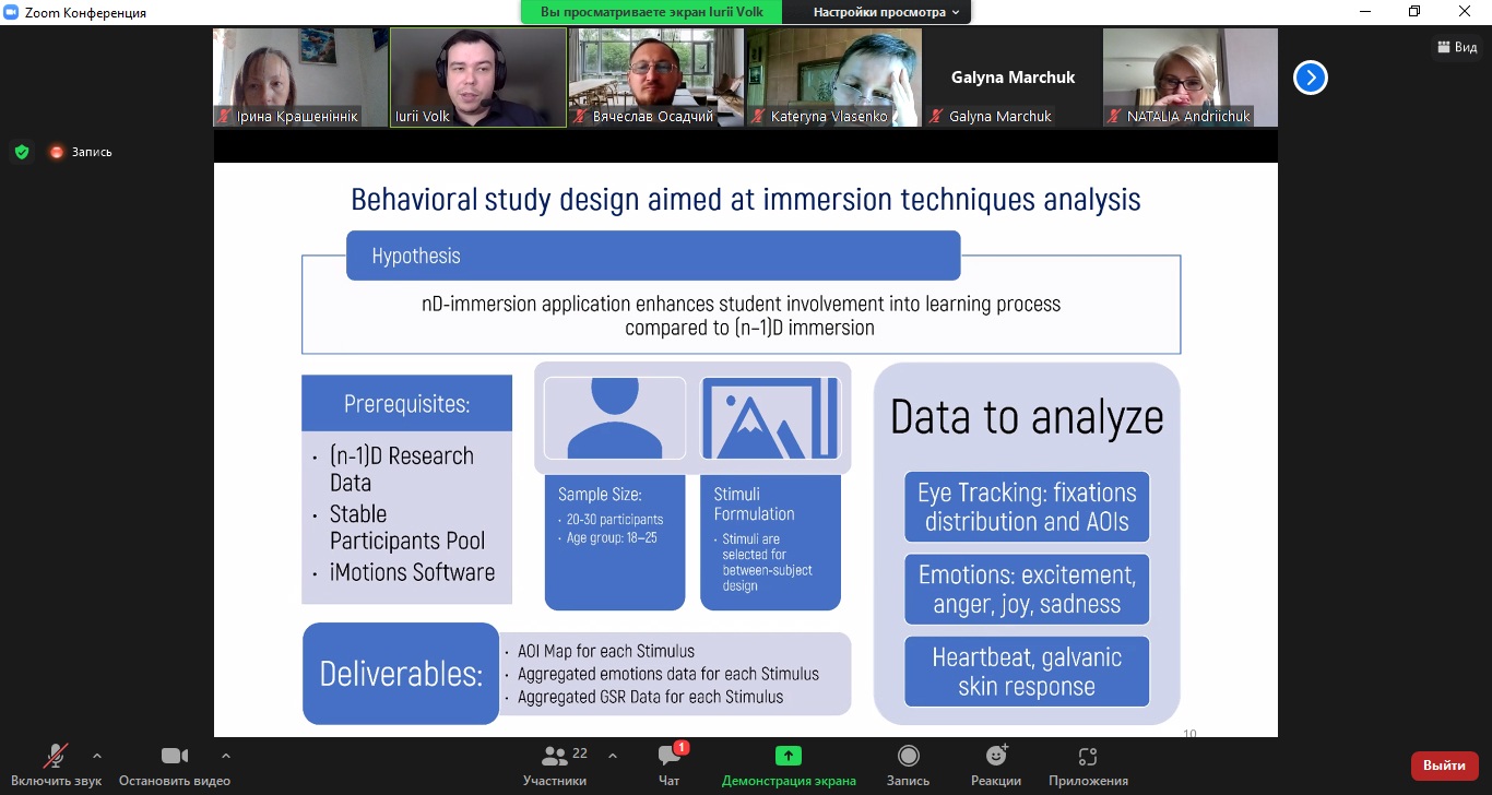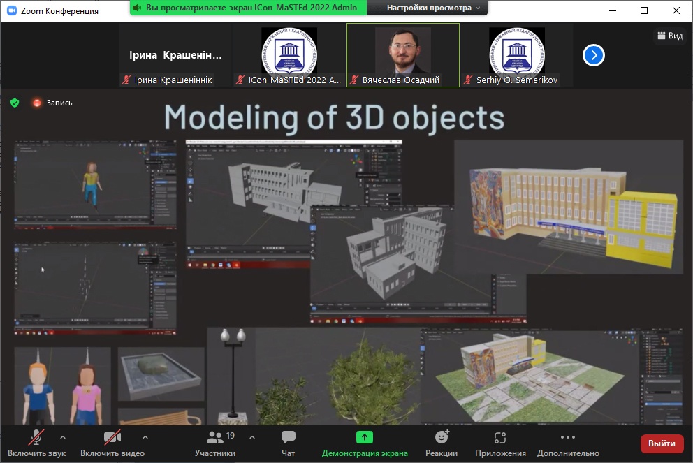 20.05.2022 відбулося засідання секції «Educational Technology. Augmented Reality in Education» за головування професора Вячеслава Осадчого, де викладачі кафедри Ірина Крашеніннік, Сергій Конюхов, Катерина Осадча, Альона Чорна та Ірина Сердюк представили результати колективного дослідження «The impact of psychological and learning training on educational motives and reflective skills of future IT specialists». Професор Вячеслав Осадчий зробив доповідь «A blended English for Specific Purposes course with the focus on critical thinking skills development for computer science students», підготовлену у співпраці з Світланою Симоненко та Наталією Зайцевою (Таврійський державний агротехнологічний університет).