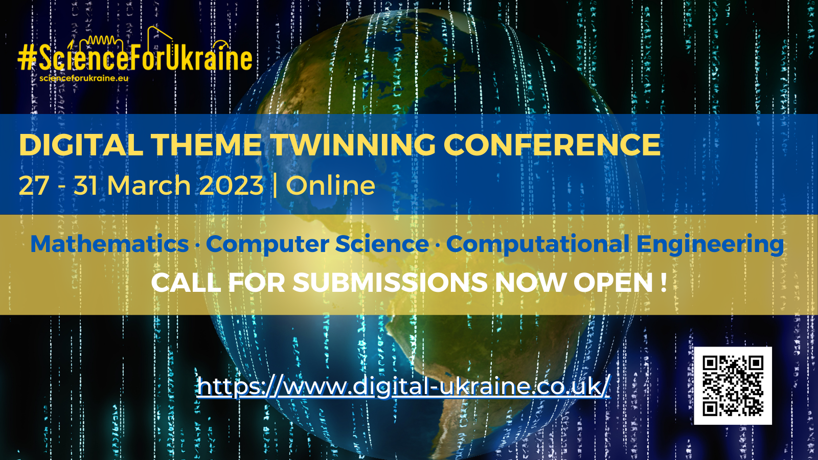В рамках ініціативи здійснюється заохочення вчених і студентів-дослідників з Великобританії та України, які зацікавлені у налагодженні дослідницької співпраці за цифровими темами (математика, інформатика, обчислювальна інженерія, цифрові технології), взяти участь у першій конференції Twinning 27-31 березня 2023 року – https://www.digital-ukraine.co.uk.