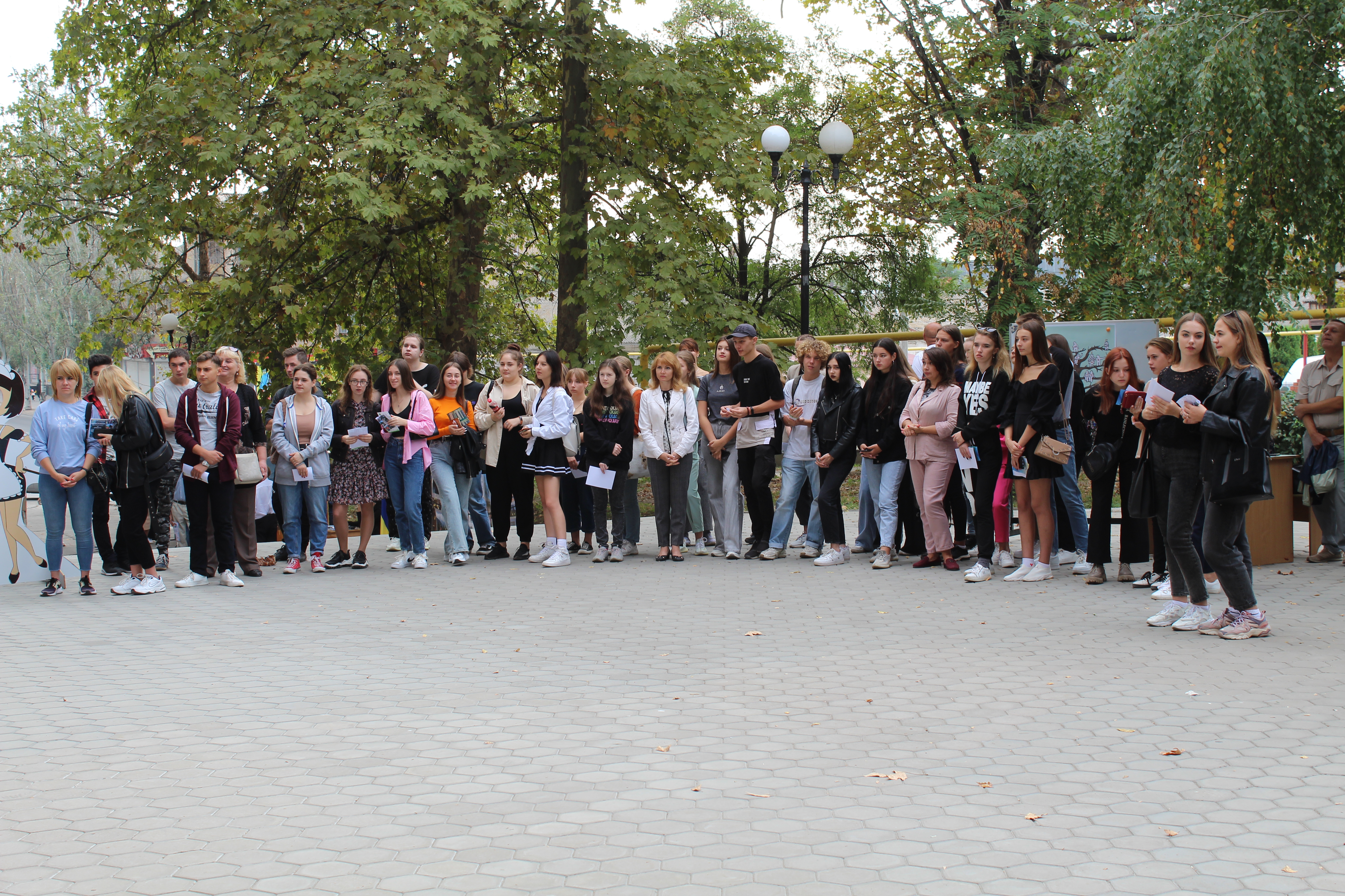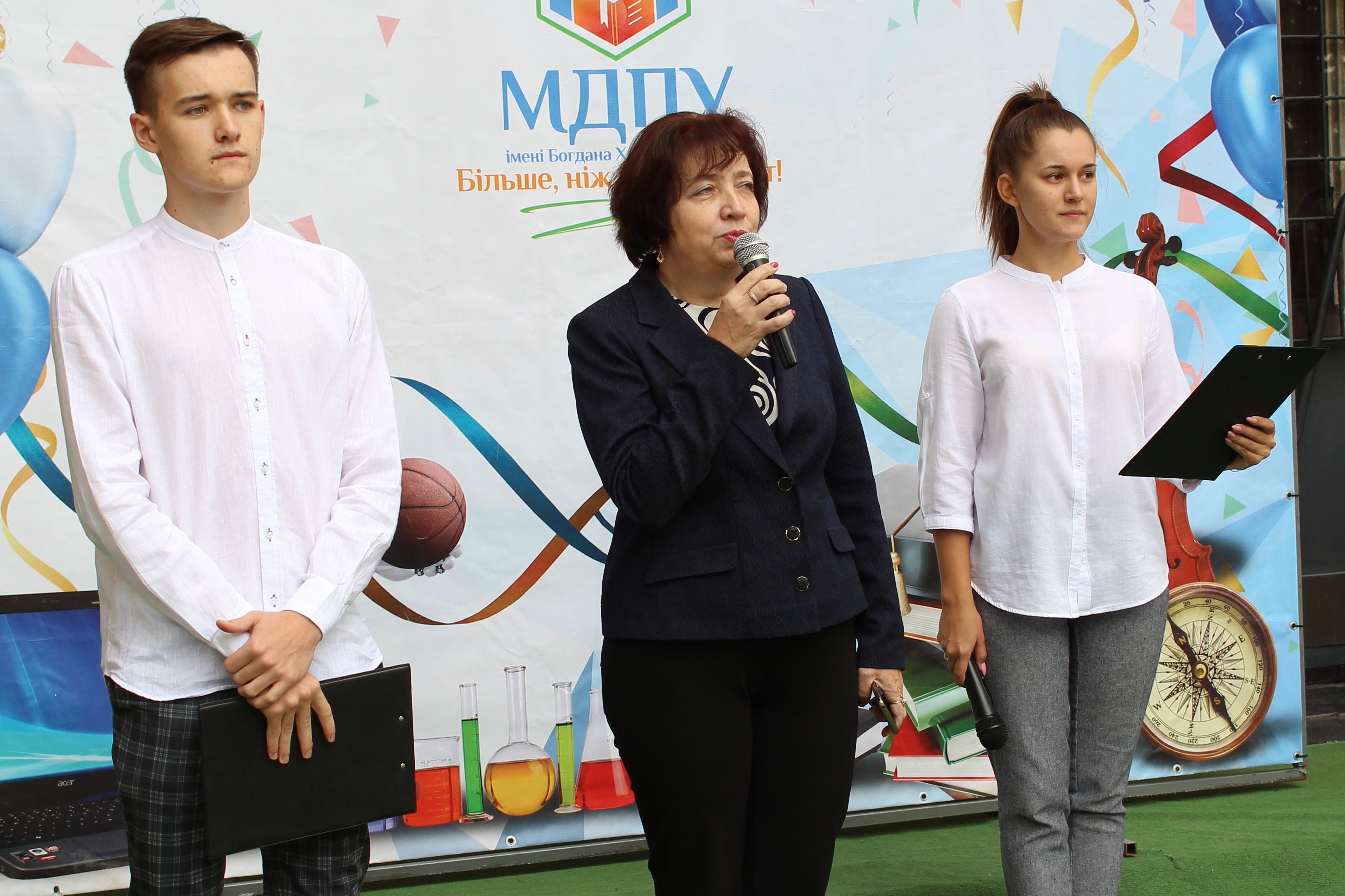 Присутніх на площі привітала перший проректор університету Ірина Мальцева: «Цього року наш університет гостинно відкрив двері для більше ніж 1000 нових студенів. І це надзвичайно креативні, молоді фахівці, які готуються по різним спеціальностям. Але, як то кажуть, можна багато чого слухати, але краще це побачити». Ірина Андріївна побажала гарного дня, цікавої та плодотворної роботи і запросила учнів до студентських лав наступного року.