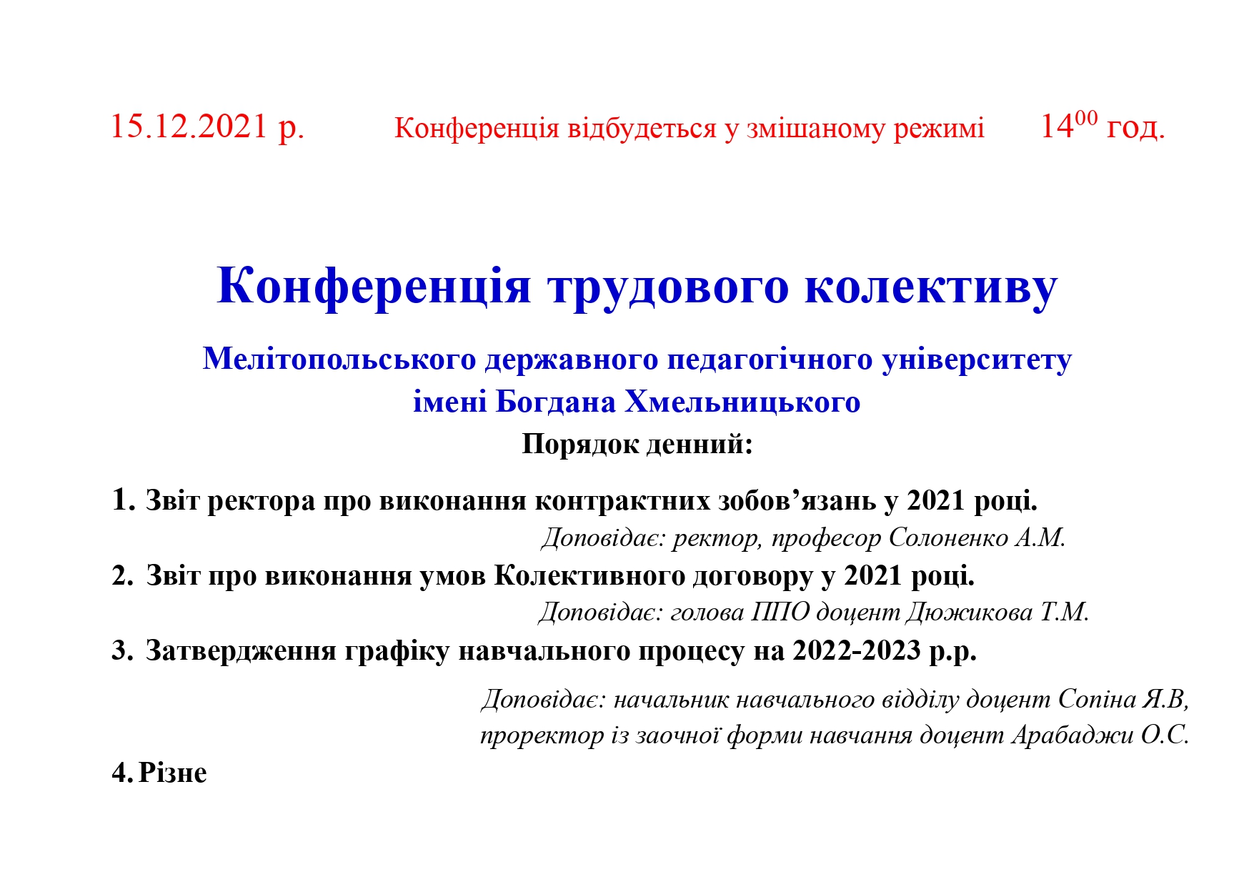 МДПУ > Новини університету > Увага! Конференція трудового колективу університету