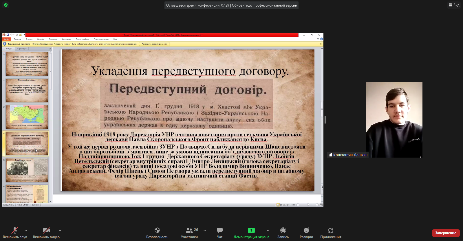 Студенти спеціальності «Історія» та «Історія та археологія» підготували тематичні виступи, які стосувалися історичних подій в 1918-1919 рр. в Україні.