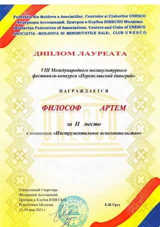 Диплом лауреата ІІ ступеня – студент Навчально-наукового інституту соціально-педагогічної та мистецької освіти Філософ Артем, керівник – завідувач кафедри інструментального виконавства та музичного мистецтва естради Марина Білецька.
