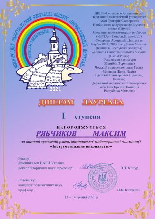 Диплом лауреата І ступеня – студент Навчально-наукового інституту соціально-педагогічної та мистецької освіти Рябчиков Максим, керівник – завідувач кафедри інструментального виконавства та музичного мистецтва естради Марина Білецька.