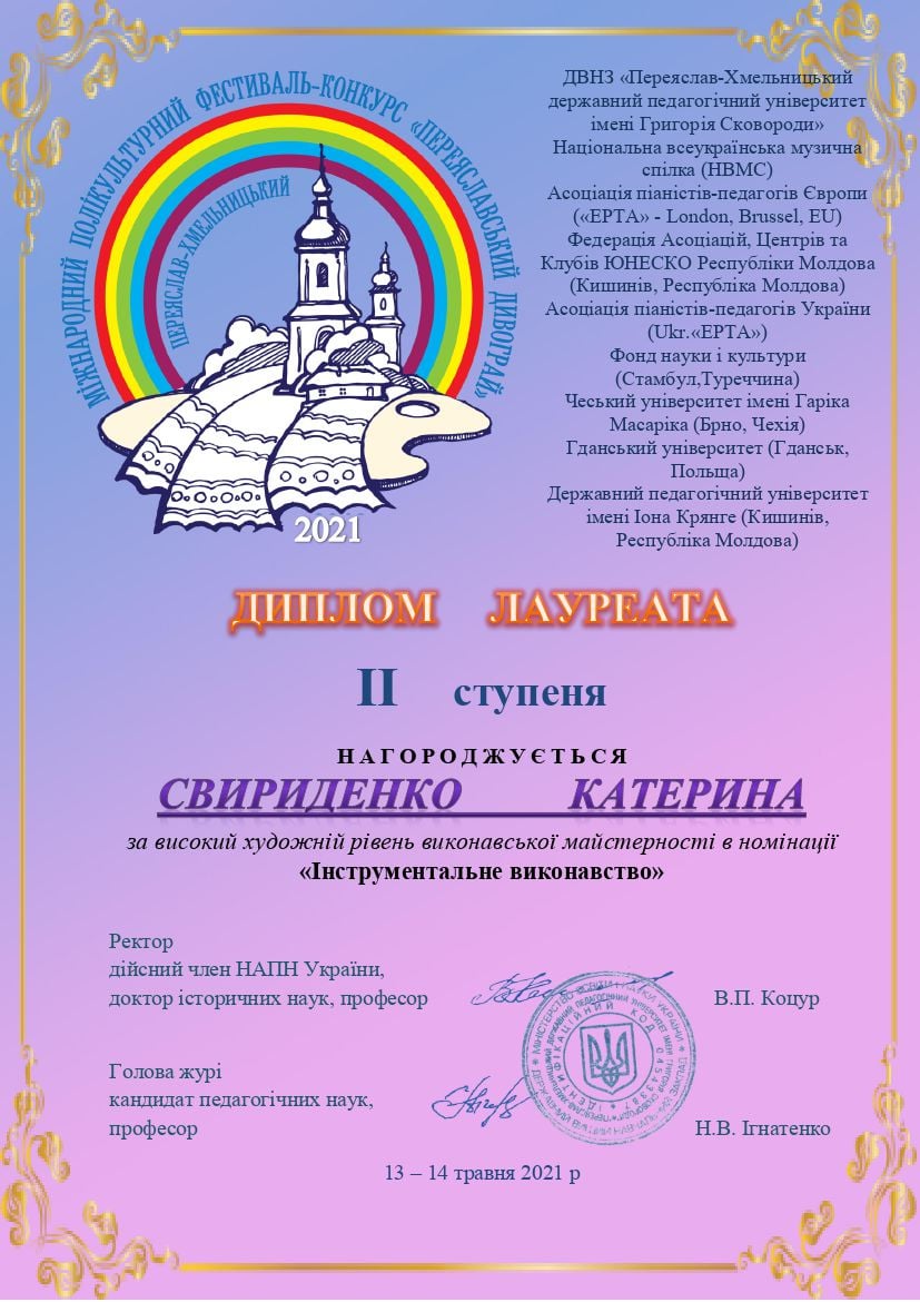 Диплом лауреата ІІ ступеня – студентка Навчально-наукового інституту соціально-педагогічної та мистецької освіти Свириденко Катерина, керівник – старший викладач кафедри інструментального виконавства та музичного мистецтва естради Елеонора Власенко.