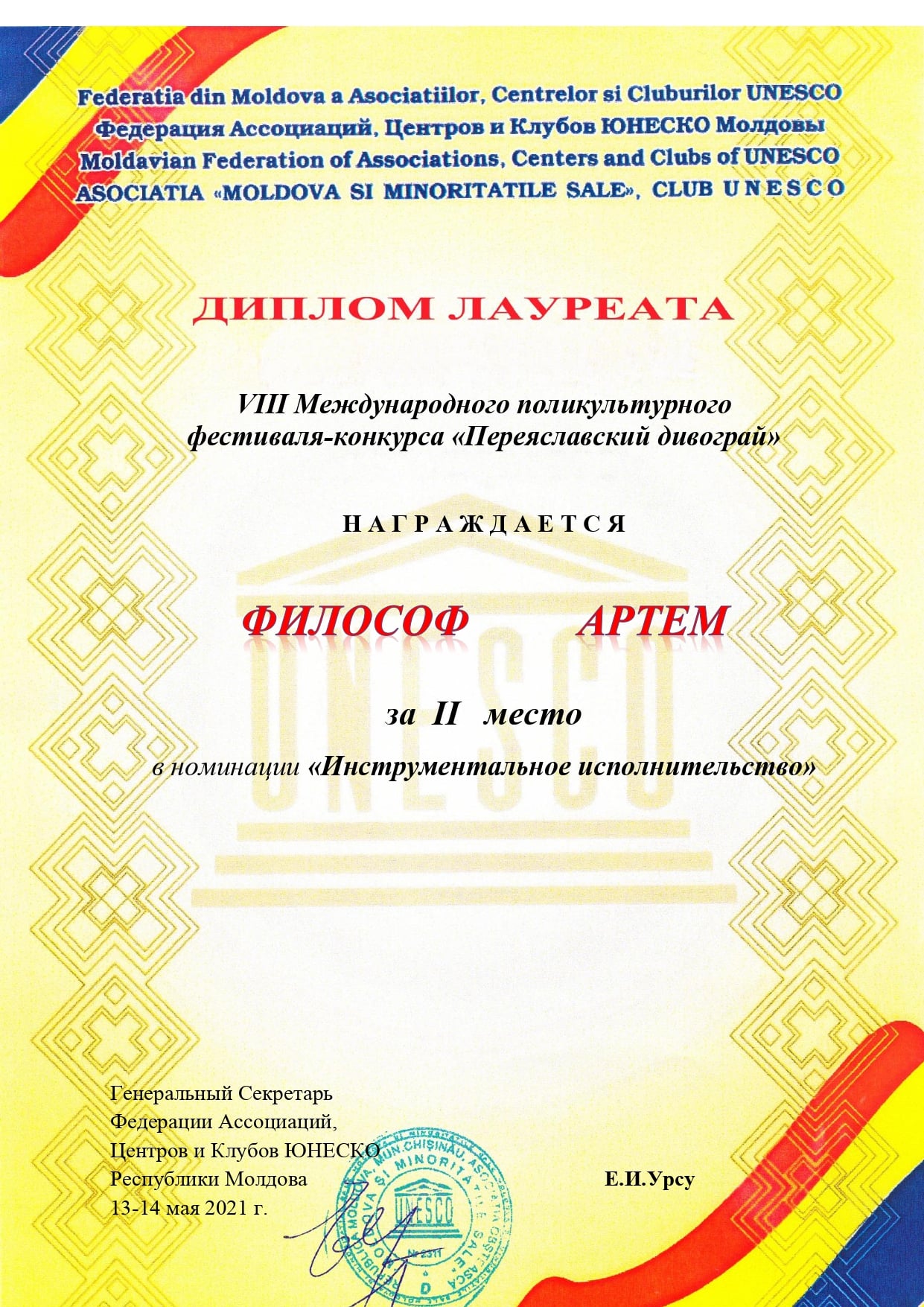 Диплом лауреата ІІ ступеня – студент Навчально-наукового інституту соціально-педагогічної та мистецької освіти Філософ Артем, керівник – завідувач кафедри інструментального виконавства та музичного мистецтва естради Марина Білецька.