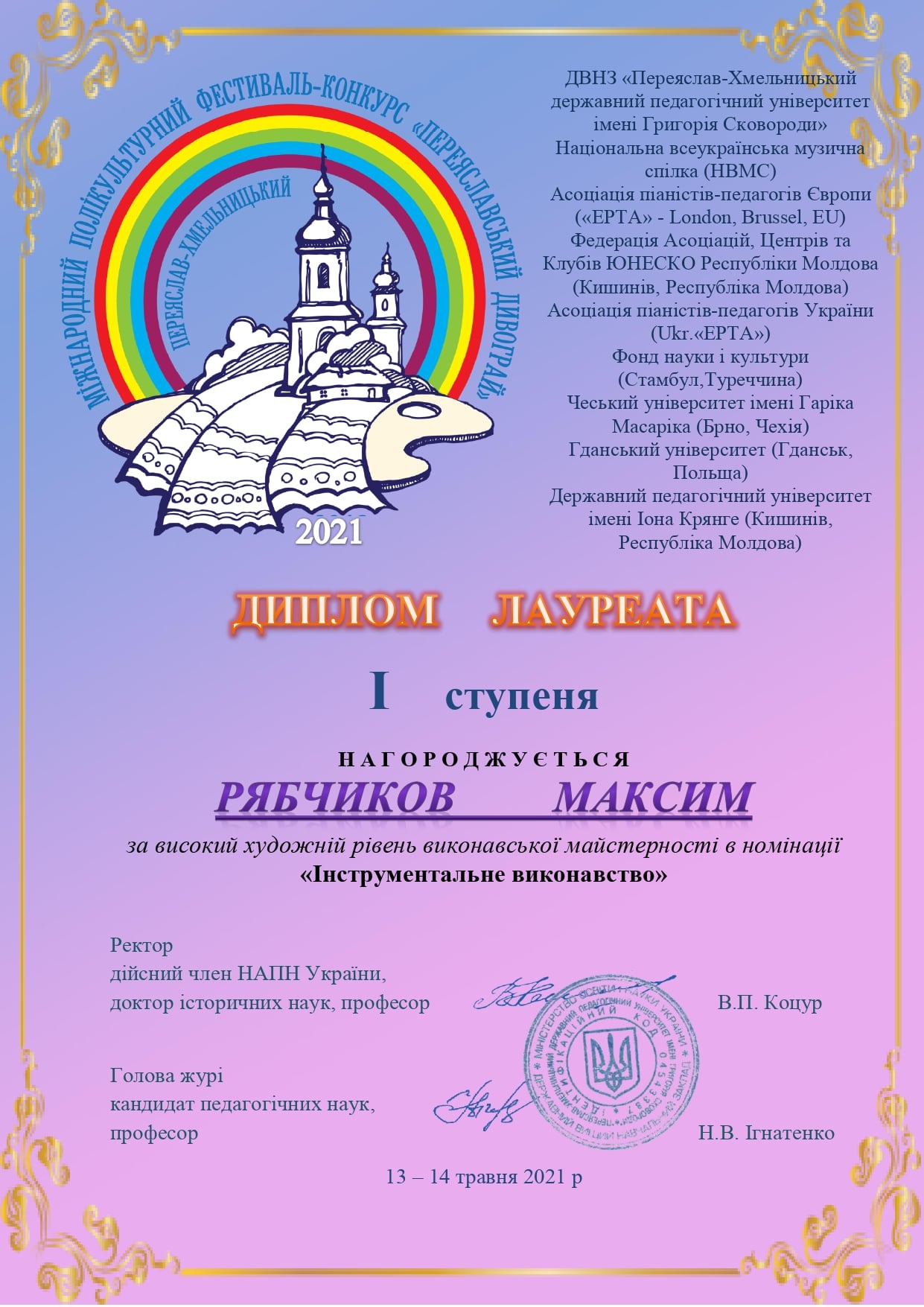 Диплом лауреата І ступеня – студент Навчально-наукового інституту соціально-педагогічної та мистецької освіти Рябчиков Максим, керівник – завідувач кафедри інструментального виконавства та музичного мистецтва естради Марина Білецька.