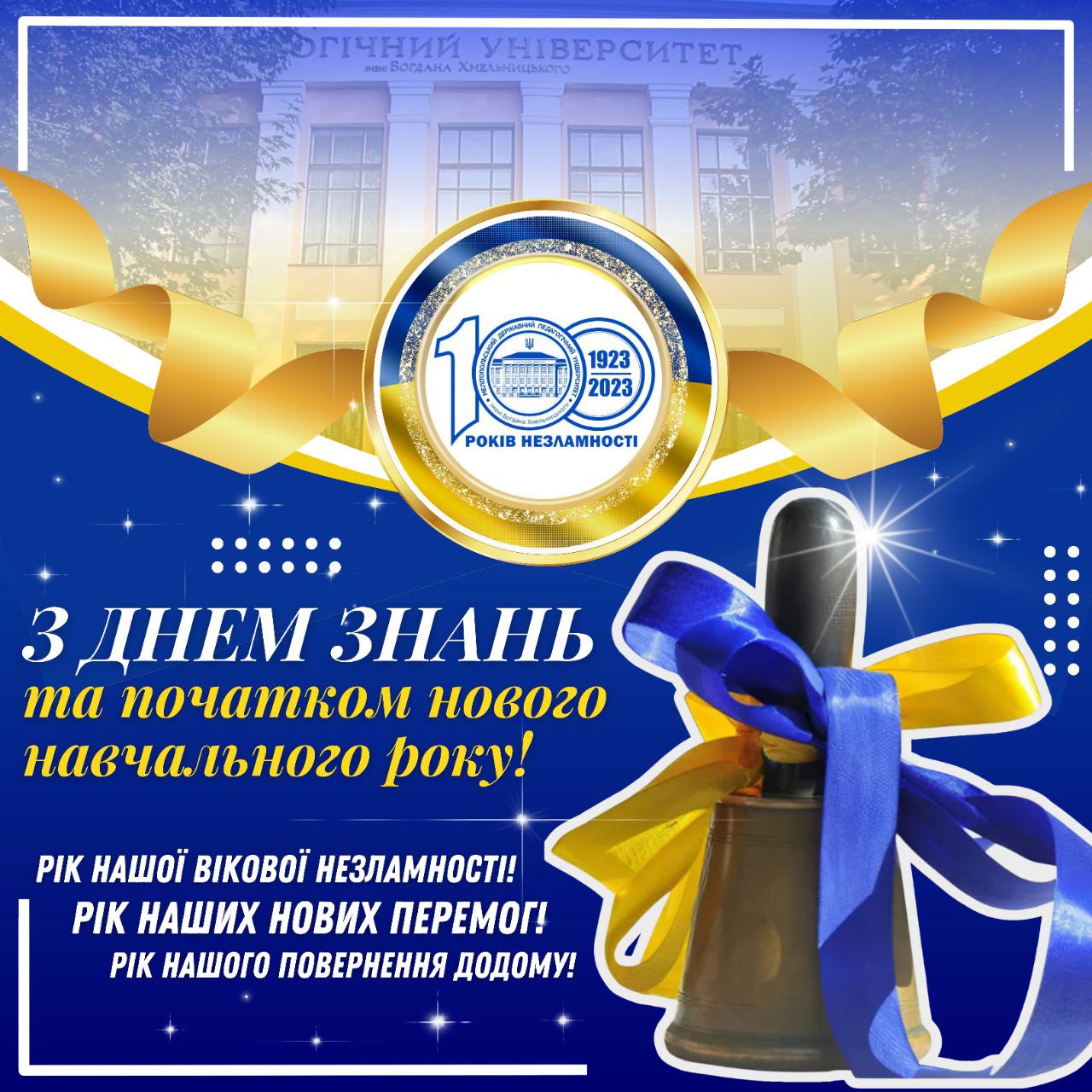 Багатотисячна академічна родина МДПУ імені Богдана Хмельницького щаслива зустрічати свою золоту, соту осінь та приймати до себе ювілейне поповнення цілеспрямованих, амбітних та незламних – ПЕРШОКУРСНИКІВ 2023 РОКУ!