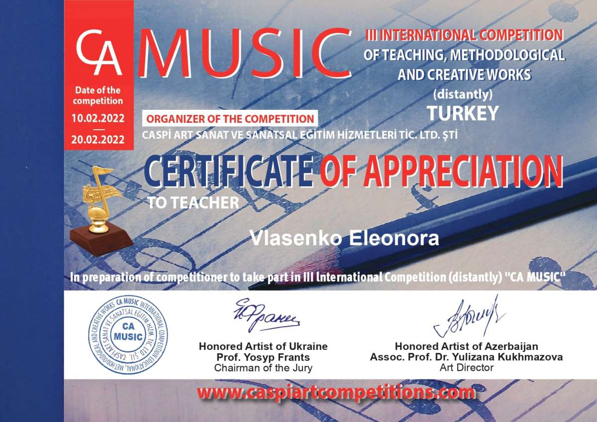 Вітаємо з перемогою у ІІІ Міжнародному конкурсі наукових, методичних та творчих робіт CA Music!
