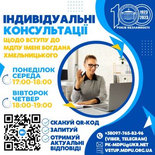 В тебе є питання щодо умов вступу? Переліку документів чи вступних випробувань? Або ти бажаєш отримати більш детальну інформацію щодо тої чи іншої освітньої програми?