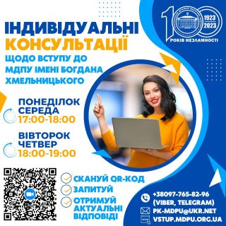 В тебе є питання щодо умов вступу? Переліку документів чи вступних випробувань? Або ти бажаєш отримати більш детальну інформацію щодо тої чи іншої освітньої програми?