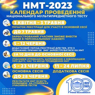Реєстрація осіб для участі в основній сесії НМТ триватиме з 3 квітня до 3 травня 2023 року.