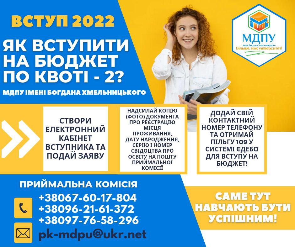 🔹Надсилай копію (фото) документа про реєстрацію місця проживання, дату народження, серію і номер свідоцтва про освіту до Приймальної комісії МДПУ імені Богдана Хмельницького pk-mdpu@ukr.net