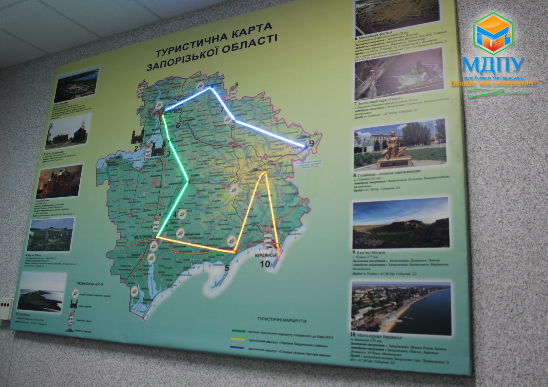 Наприкінці візиту відбулася зустріч з представниками Наукового парку «Melitopol travel university». Декан природничо-географічного факультету Лариса Донченко і доцент кафедри туризму, соціально-економічної географії та краєзнавства, консультант з питань розвитку туризму КУ «Агенція розвитку Мелітополя» Олеся Топалова презентували наробки в галузі туризму, серед яких: